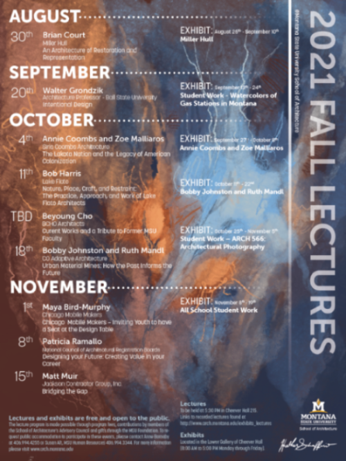 View all Fall 2021 Semester lectures, exhibits, and workshops.